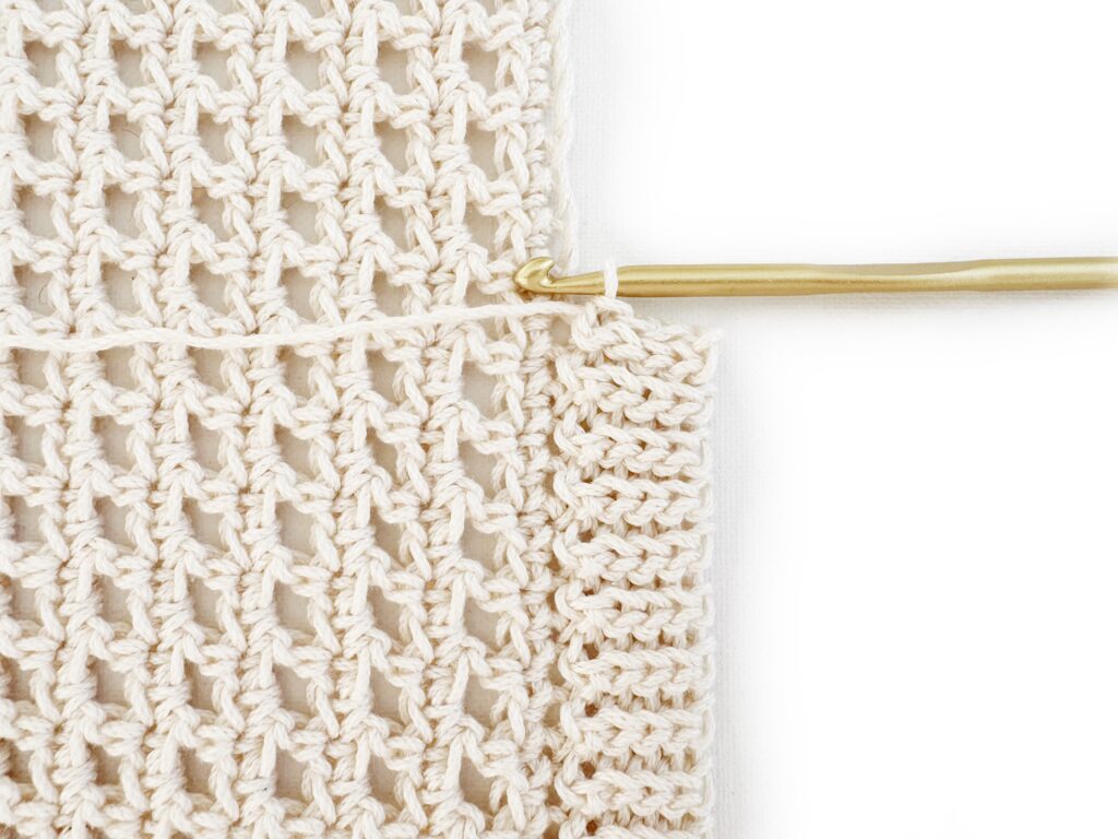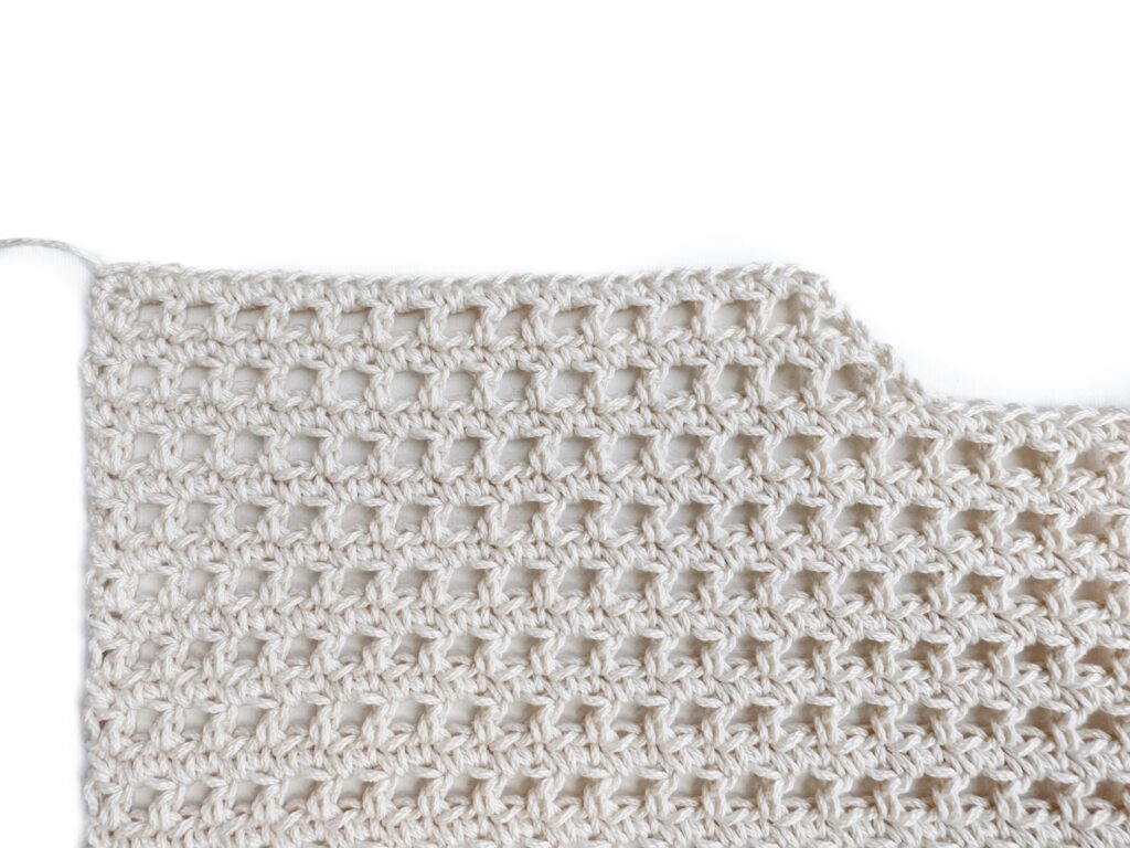 This rattan-look piece has been on my ‘to-design’ list for a while.  I remember my grand parents had a beautiful rattan rocking chair . . it had dark wood trim and a light rattan seat and back.  It was so simple and gorgeous. Lately I’ve been admiring rattan bags and rattan look cover ups and sweaters. It took a lot of trial and error to get the stitch and spacing just right but I’m very happy with the final rattan inspired look.
